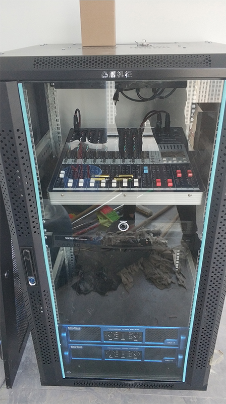 放大設(shè)備——指對(duì)經(jīng)過調(diào)控設(shè)備混音輸出、信號(hào)處理后的信號(hào)進(jìn)行后級(jí)功率放大設(shè)備,這里指專業(yè)功率放大器;重放設(shè)備——指將經(jīng)過后級(jí)功率放大器放大的音頻信號(hào)進(jìn)行電—聲轉(zhuǎn)換并釋放表現(xiàn)出來人耳可懂的聲頻信號(hào)的設(shè)備,這里指揚(yáng)聲器;