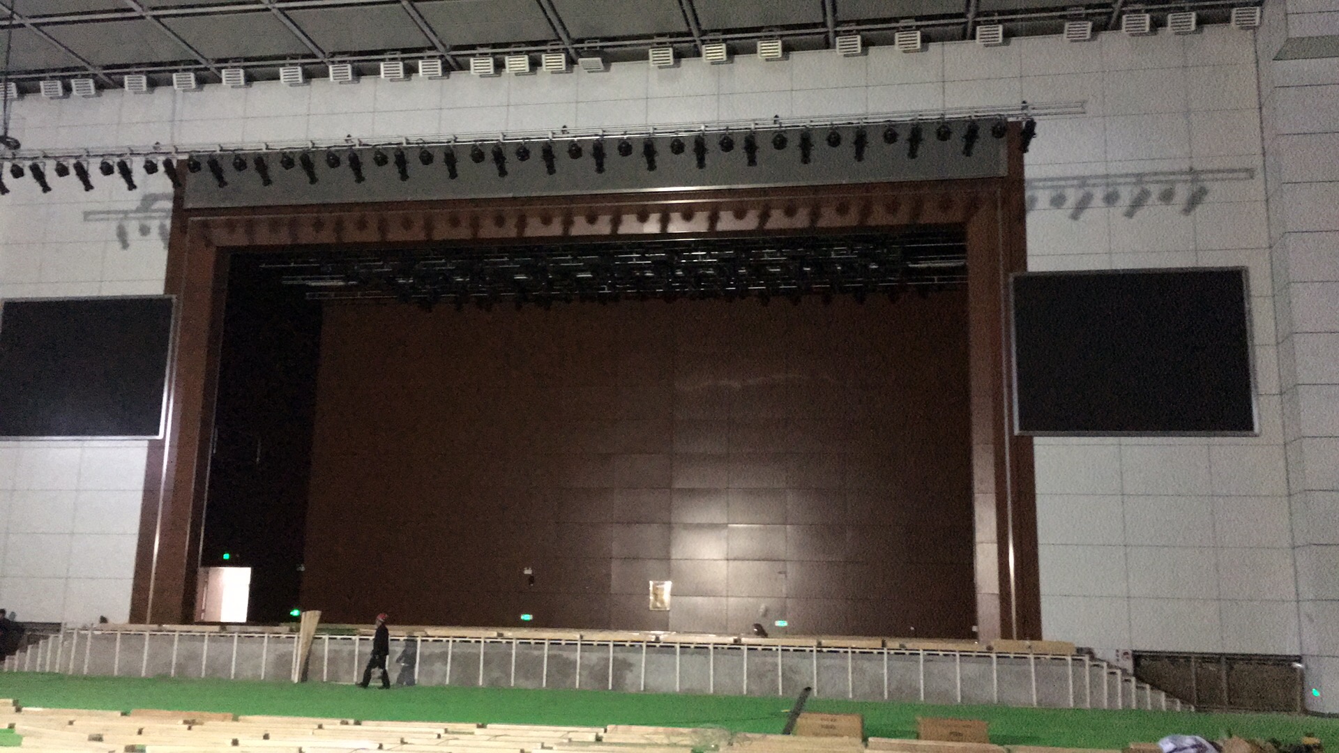 在體育館的左右兩側(cè)分別裝了2只KS-218雙18寸線性陣列-低音炮,16只KS-208雙8寸線性陣列-全頻,10只KS-118線性陣列-低音炮做為主擴(kuò)系統(tǒng)。