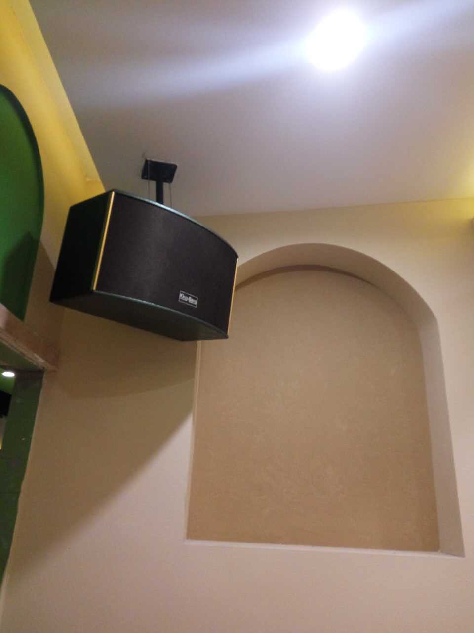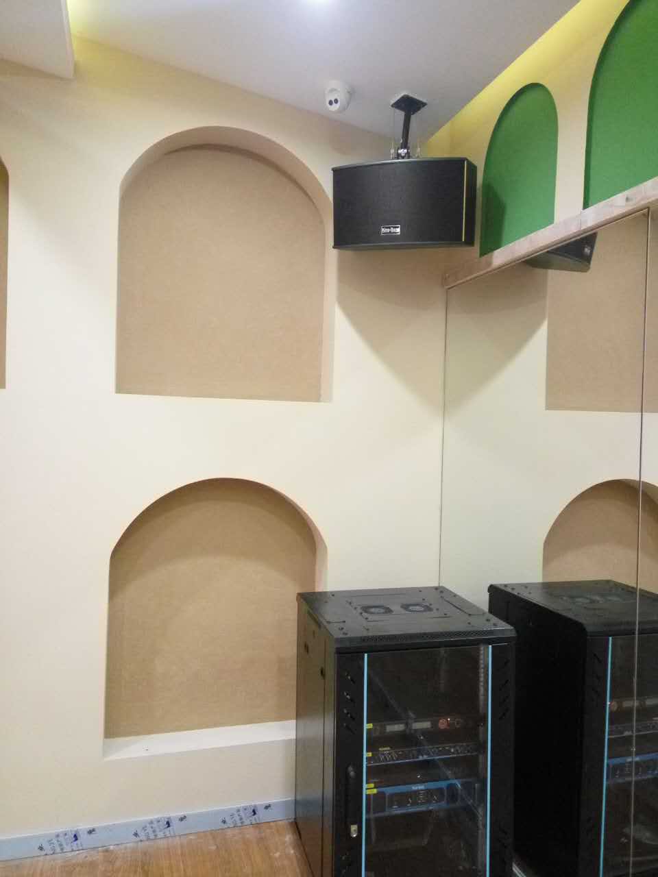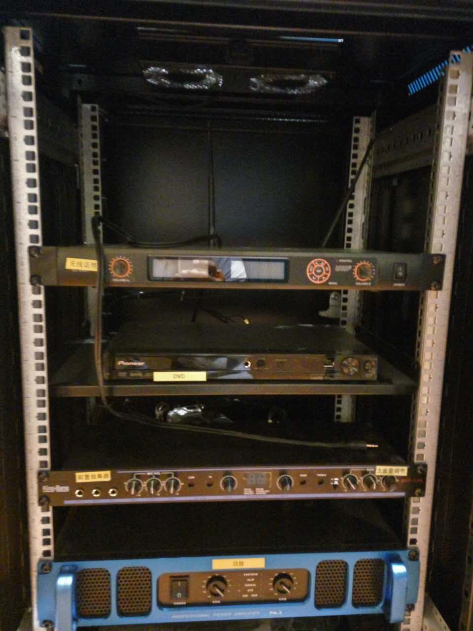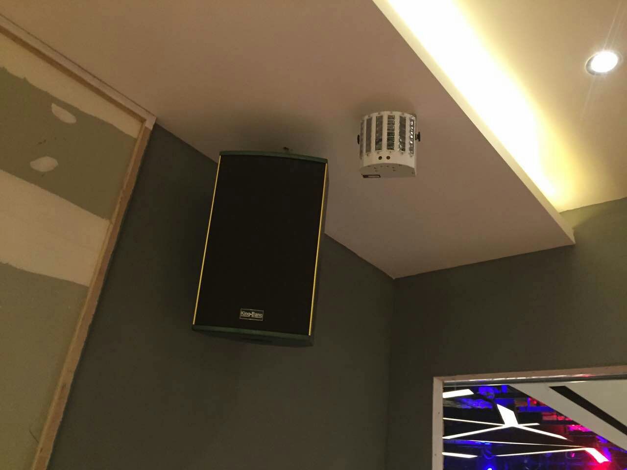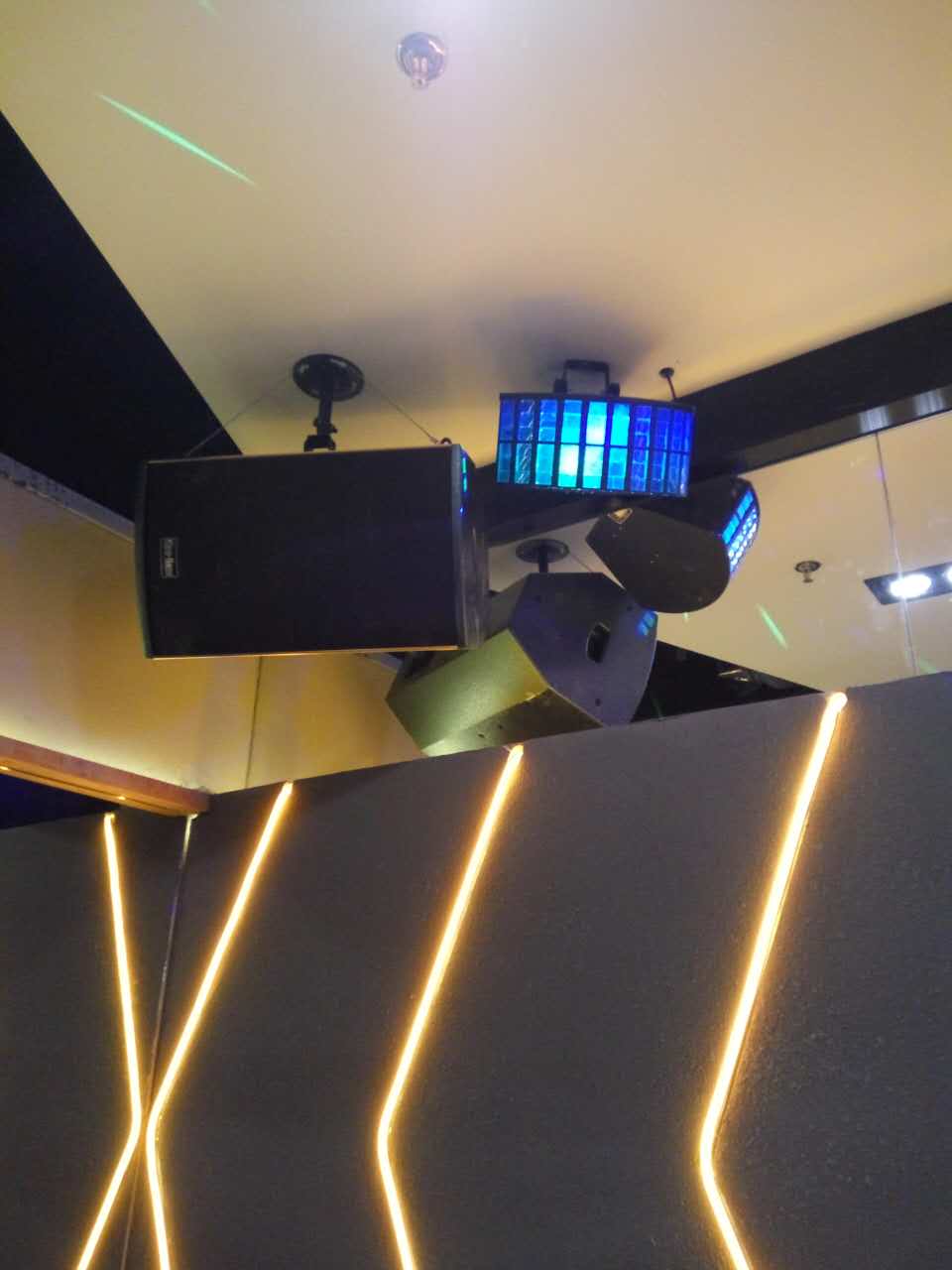 整個系統(tǒng)包括KT-10的兩分頻單10"卡包箱以及S-166的優(yōu)質的天花喇叭,所有音箱由兩臺K-7500合并式功放500W,DSP-100的專業(yè)數(shù)碼HI房卡拉OK前級。整個系統(tǒng)主要用于背景音樂的播放。